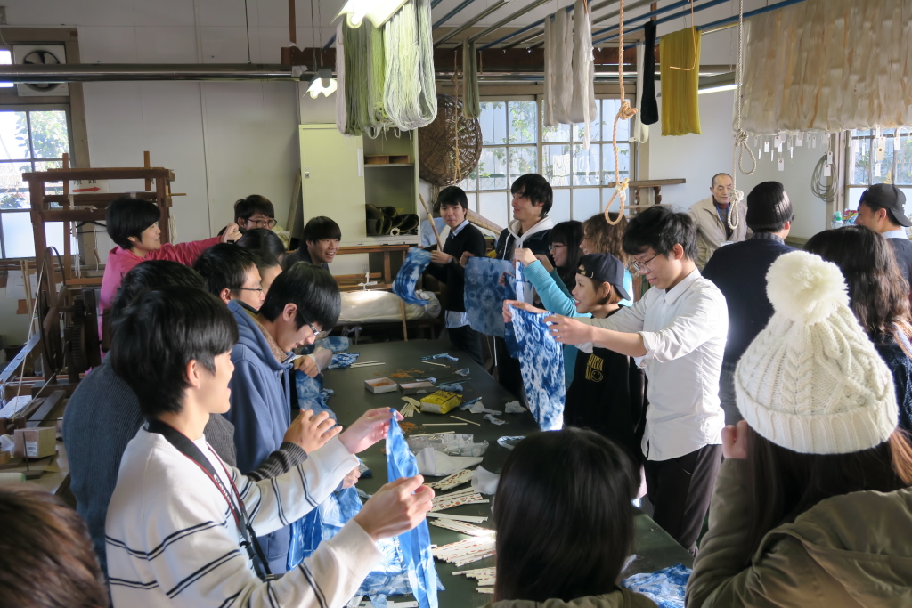 熊谷駅10時10分発のSL(蒸気機関車)に乗った一行は車内で早めの昼食をとり、昼には御花畑駅に到着し、その足でちちぶ銘仙館を目指しました。同館ではハンカチに藍染体験をし、それぞれの出来映えに留学生は感嘆の声を上げていました。その後、町なかを散策しながら秩父神社に到着。神職さんから神社での参拝の仕方、神社の由来などの説明を受け、日本文化の一端に触れました。最後に秩父地場産センターで土産物を購入し、帰路につきました。留学生にとって、都市部とは異なる秩父地方の文化を堪能した一日となったようです。