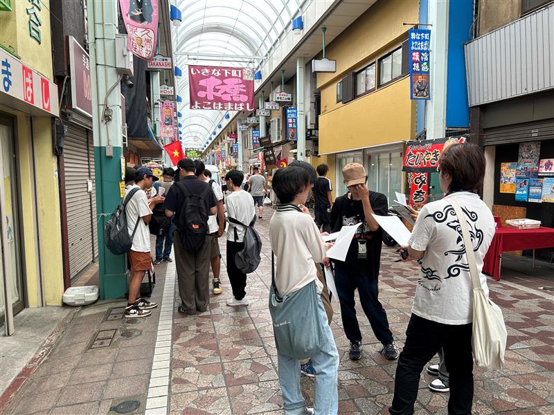 横浜市内の「アートの街」として若手アーティストが集まる黄金町,笑点の司会を務めていた桂歌丸さんゆかりの横浜橋商店街を中心に歩きました.観光地としての「横浜」とは少し異なる街の様子に学生は興味深くメモを取っていました.また,黄金町では現地で活躍されているアーティストの方,横浜橋商店街では商店街協同組合の理事長にお話を伺うことができました.