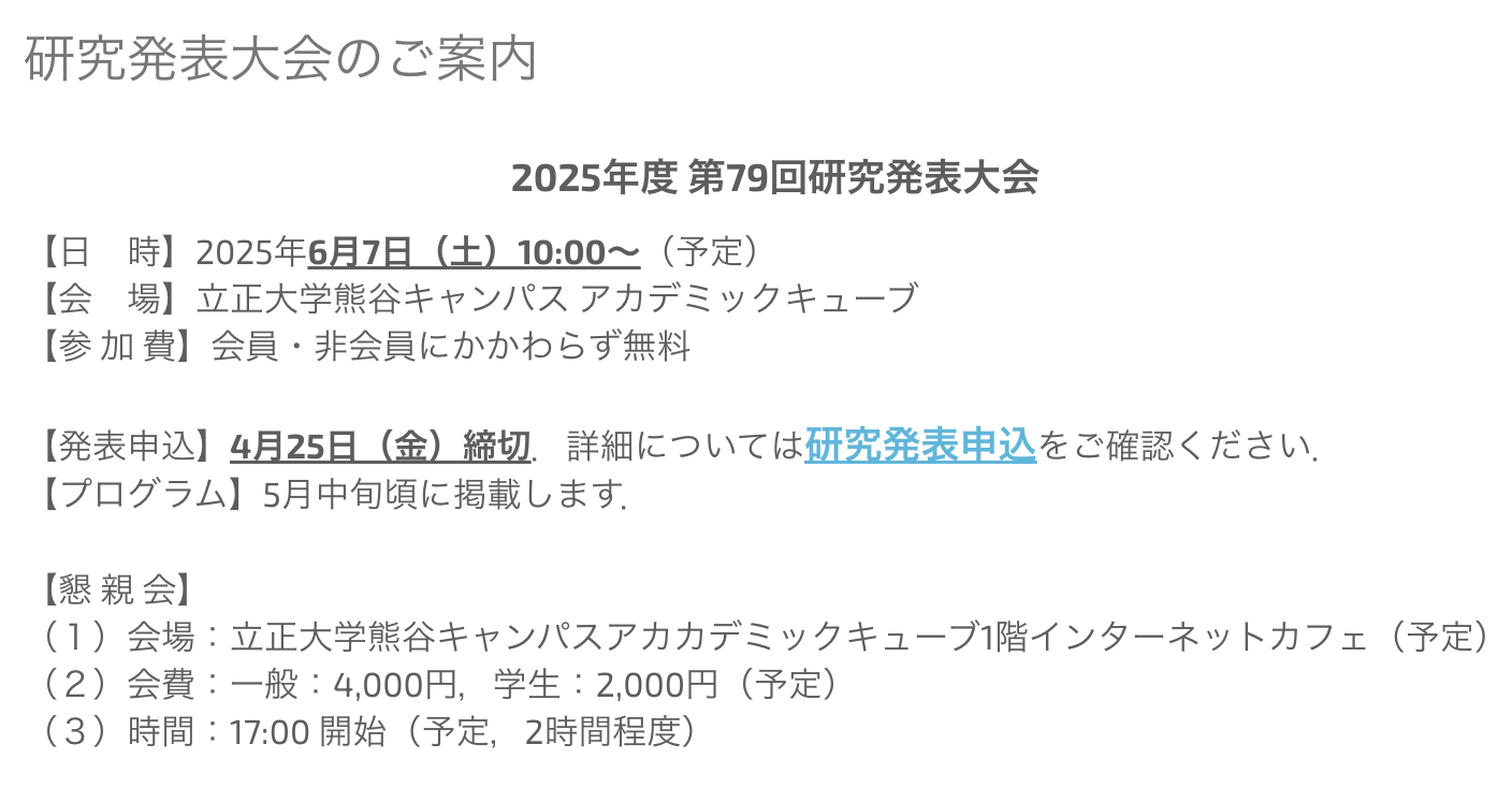 【6/7実施】立正地理学会 研究発表大会が実施されます! 2025年04月12日 6月7日に立正地理学会 研究発表大会が実施されます! 詳細はこちら: 立正地理学会HP>研究発表大会 « 前の記事 次の記事 »