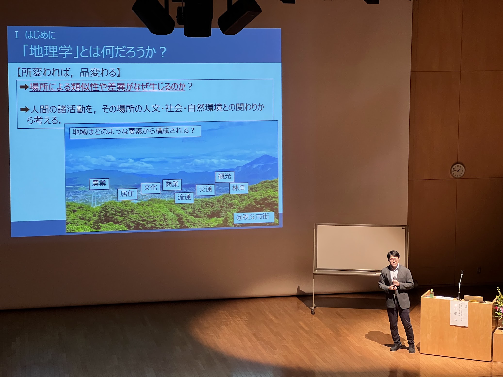 【報告】「ちちぶ学セミナー」で川添先生が講演しました! 2025年05月11日 5月10日(土)実施の令和7年度「ちちぶ学セミナー」において,地理学科の川添航専任講師が講演を行いました! 当日の様子はこちら: ようこそ!市長室へ(秩父市HP) « 前の記事 次の記事 »