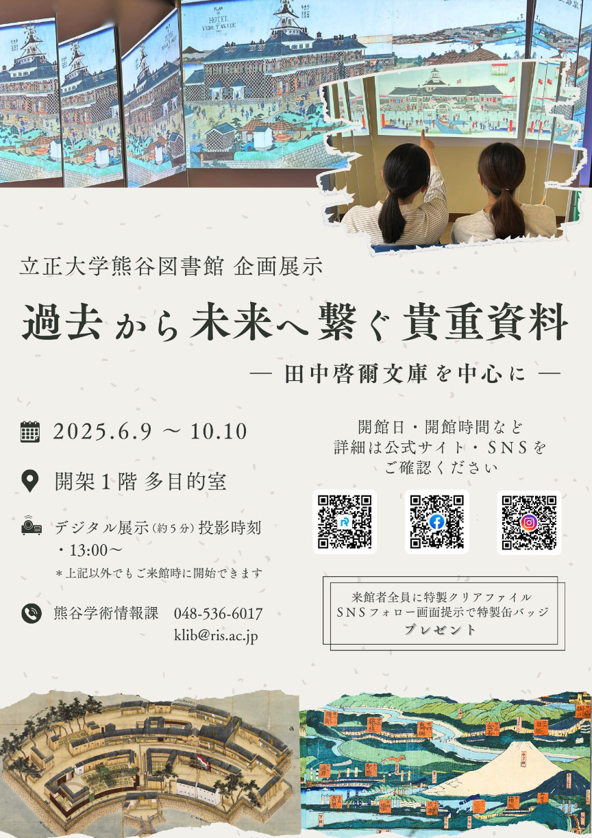 【10月10日まで開催】熊谷図書館企画展示「過去から未来へ繋ぐ貴重資料-田中啓爾文庫を中心に-」が開催されます! 2025年06月05日 立正大学熊谷図書館で熊谷図書館企画展示「過去から未来へ繋ぐ貴重資料-田中啓爾文庫を中心に-」が開催されます!展示では,立正大学の地理学教室発展の基礎を築いた田中啓爾先生(1885~1975)のコレクションの一部が公開されます. 皆さまのご来館をお待ちしております! « 前の記事 次の記事 »