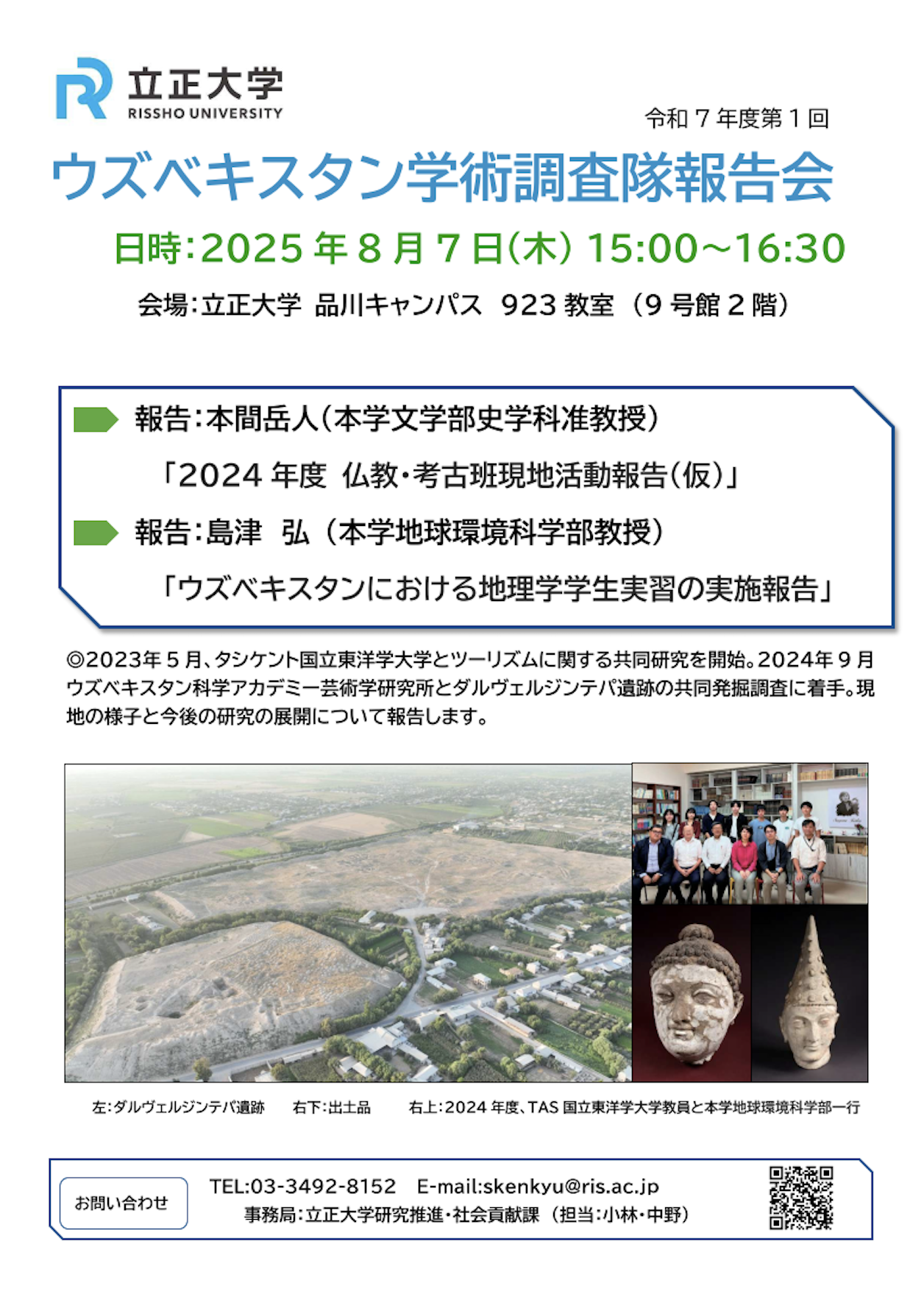2025(令和7)年度第1回「立正大学ウズベキスタン学術調査隊報告会」において,地理学科の島津教授が講演します!