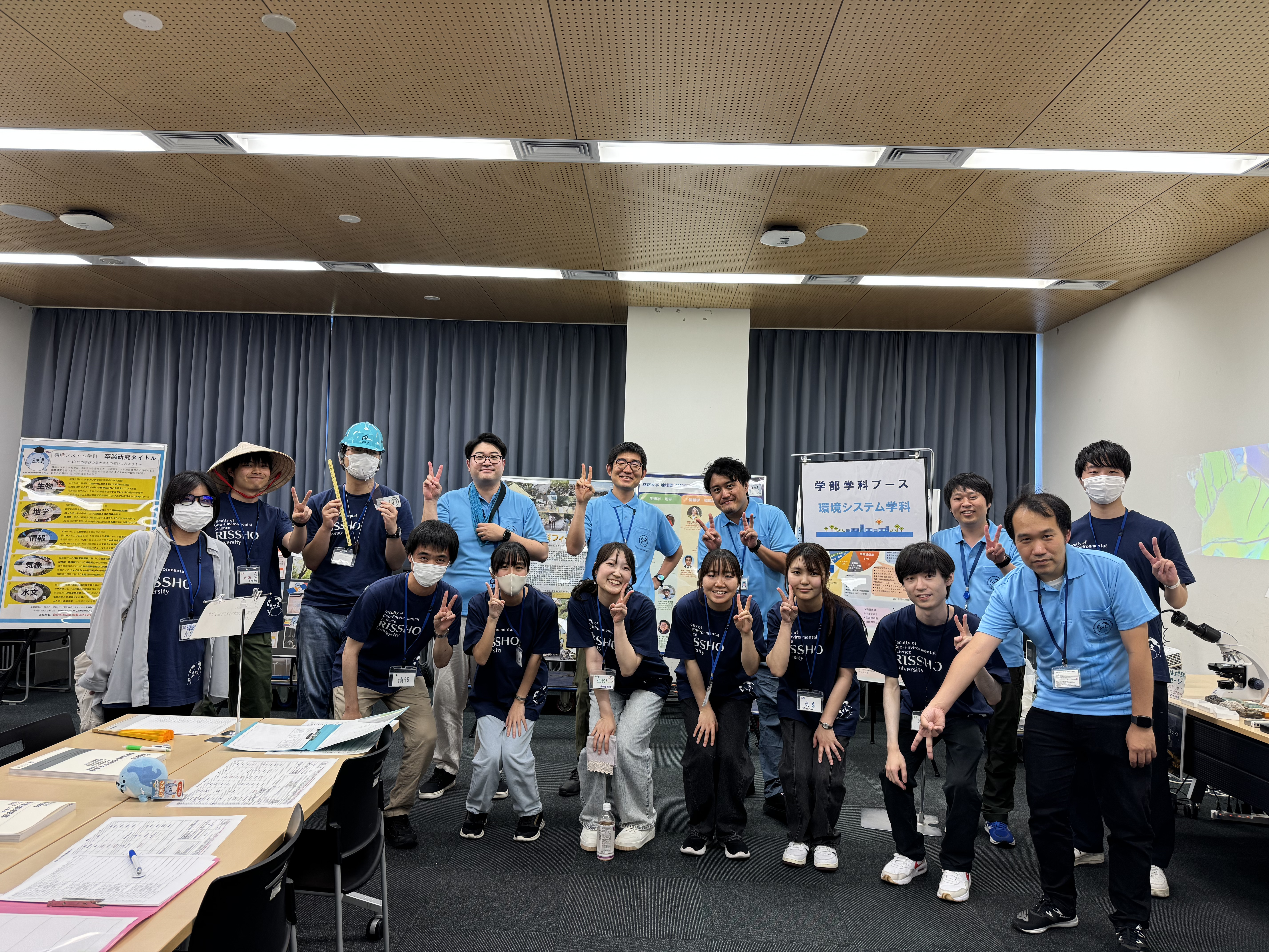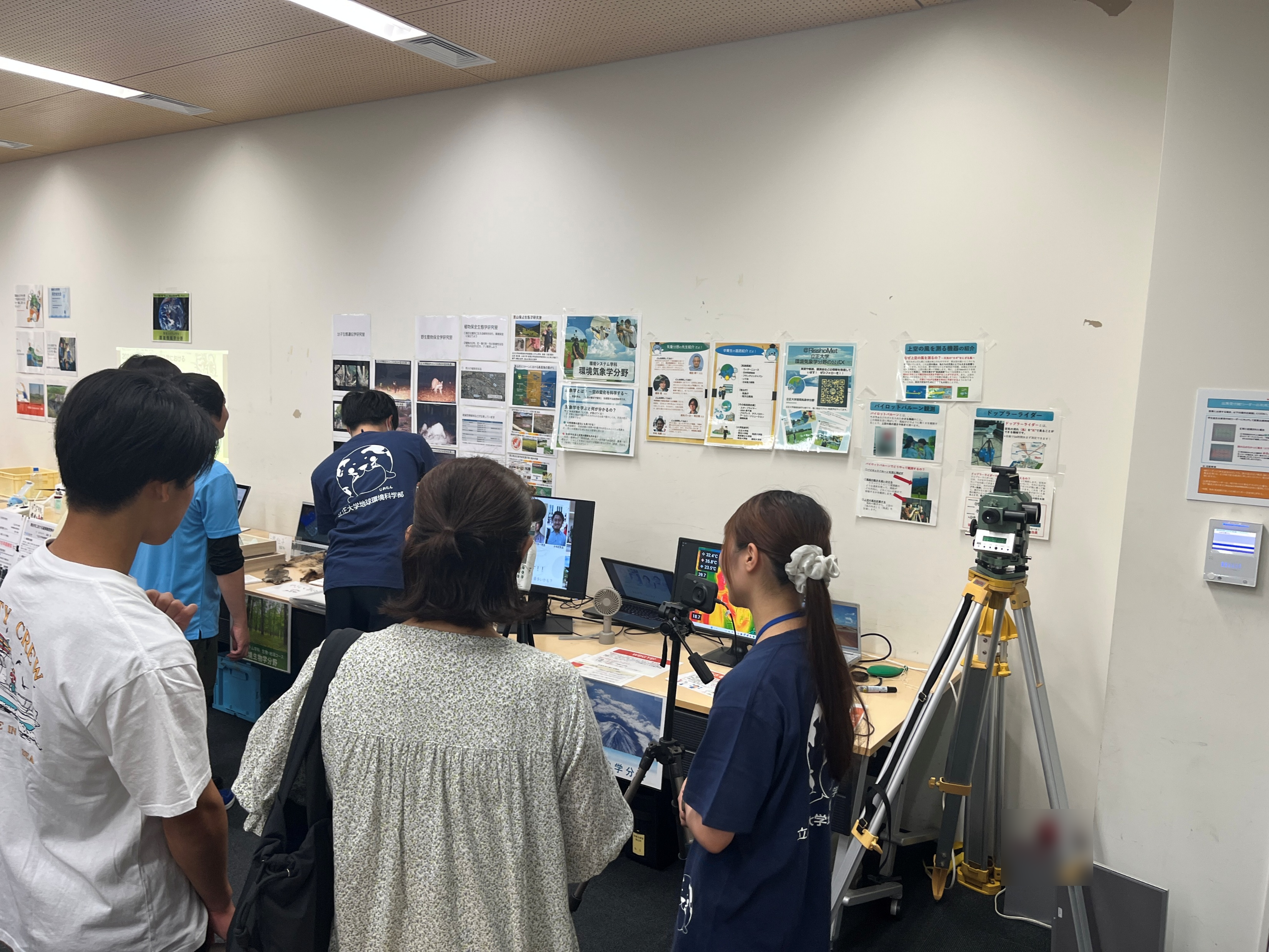 当日は環境システム学科ブースにて、水文分野では硬水・軟水・水道水の飲み比べによる利き水体験や水中ドローンによる観測体験を、気象分野ではパイロットバルーンを用いた上空風の観測体験を実施しました。生物・地学・情報分野では、多彩な展示や体験プログラムなどを通じて、来場者の皆さまに楽しんでいただきました。