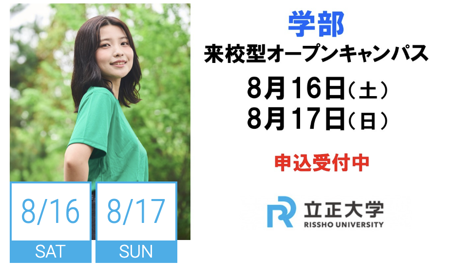 2025年8月16日(土)・17日(日)に,立正大学熊谷キャンパスで来校型オープンキャンパスが実施されます.