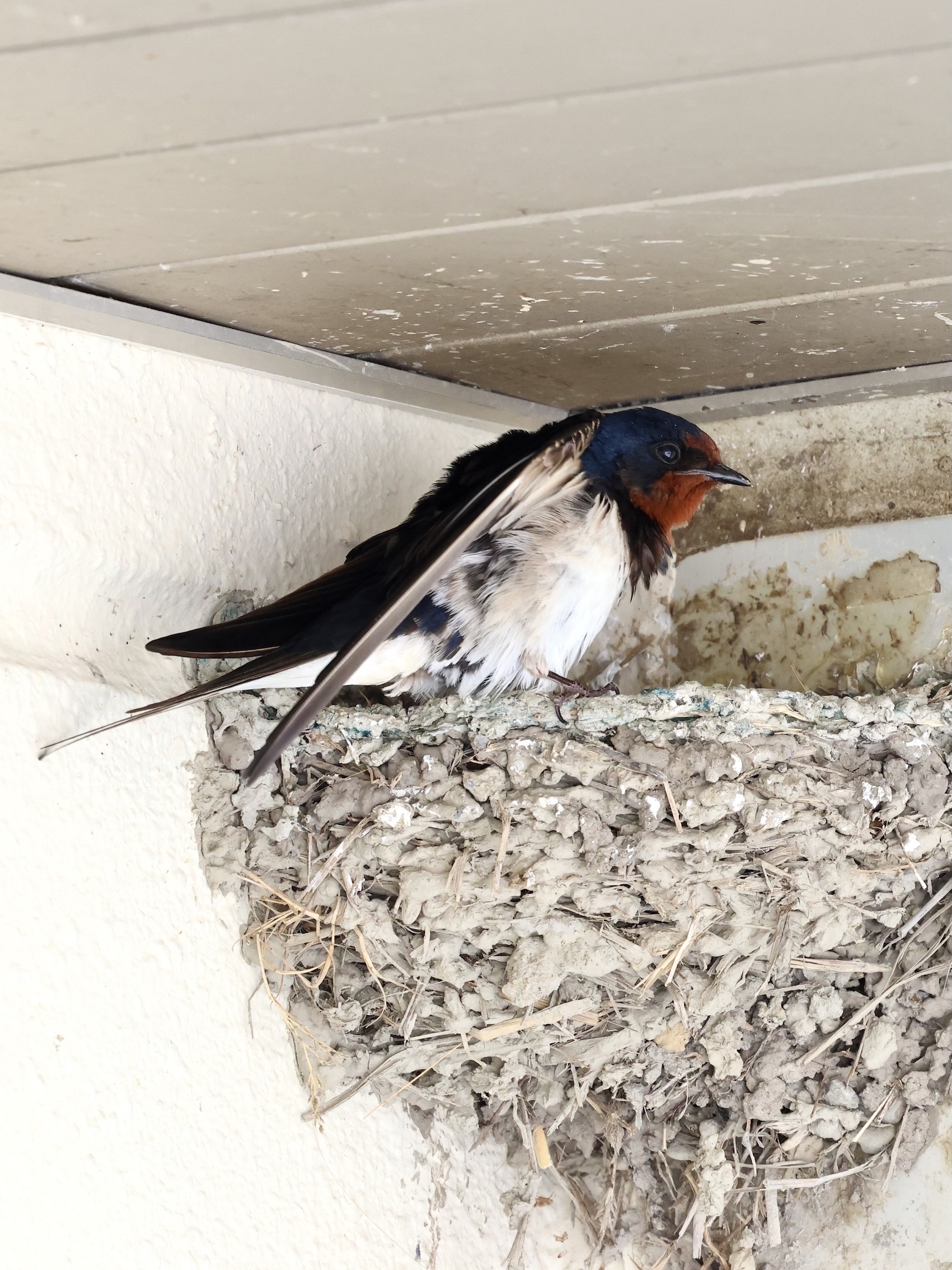 写真:籠原駅ビルの出入り口で子育てをするツバメ