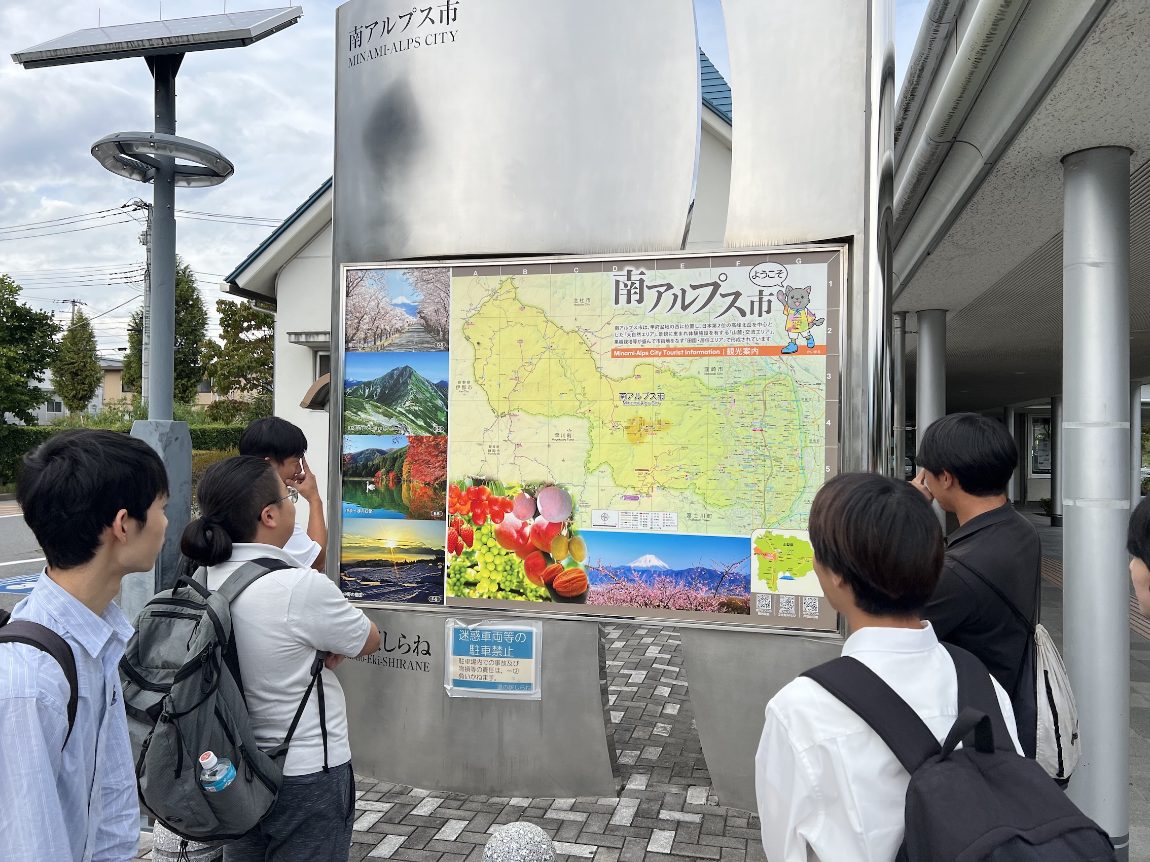 【授業紹介】フィールドワークⅡF(川添先生)の様子 2025年10月06日 9月23日〜26日まで,山梨県南アルプス市を拠点にフィールドワークⅡFを実施しました. 当日は「道の駅に訪れる観光客」,「合併に伴う都市構造再編」をテーマにグループ調査を実施しました. « 前の記事 次の記事 »
