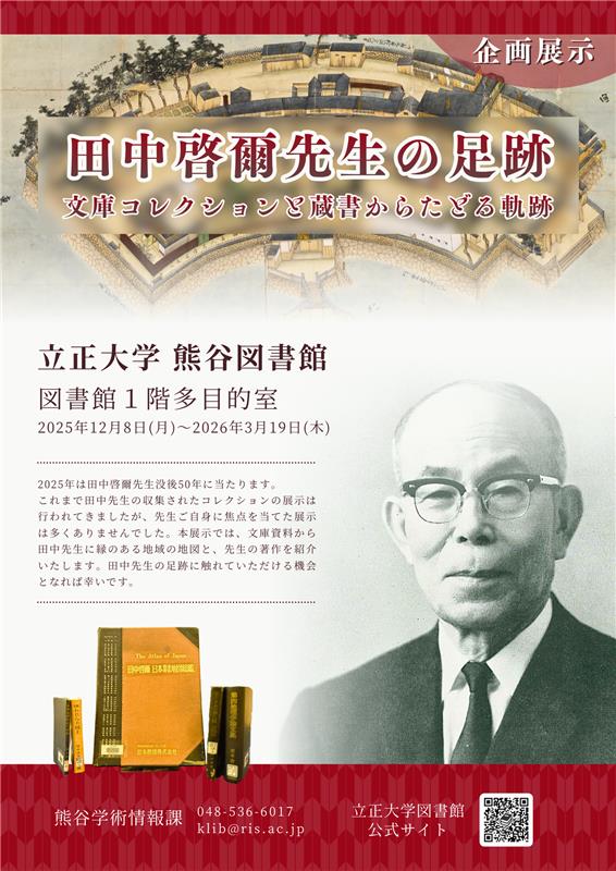 12月8日(月)より,立正大学熊谷図書館で「田中啓爾先生没後50年展示」が行われます.