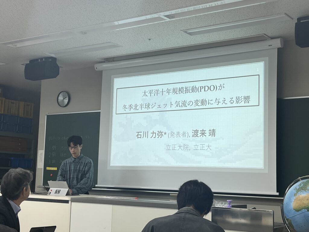 2025年12月6日(土)、法政大学市ヶ谷キャンパスにて開催された「気候影響・利用研究会」において、渡来研究室 修士2年の石川力弥さんが研究発表を行いました。