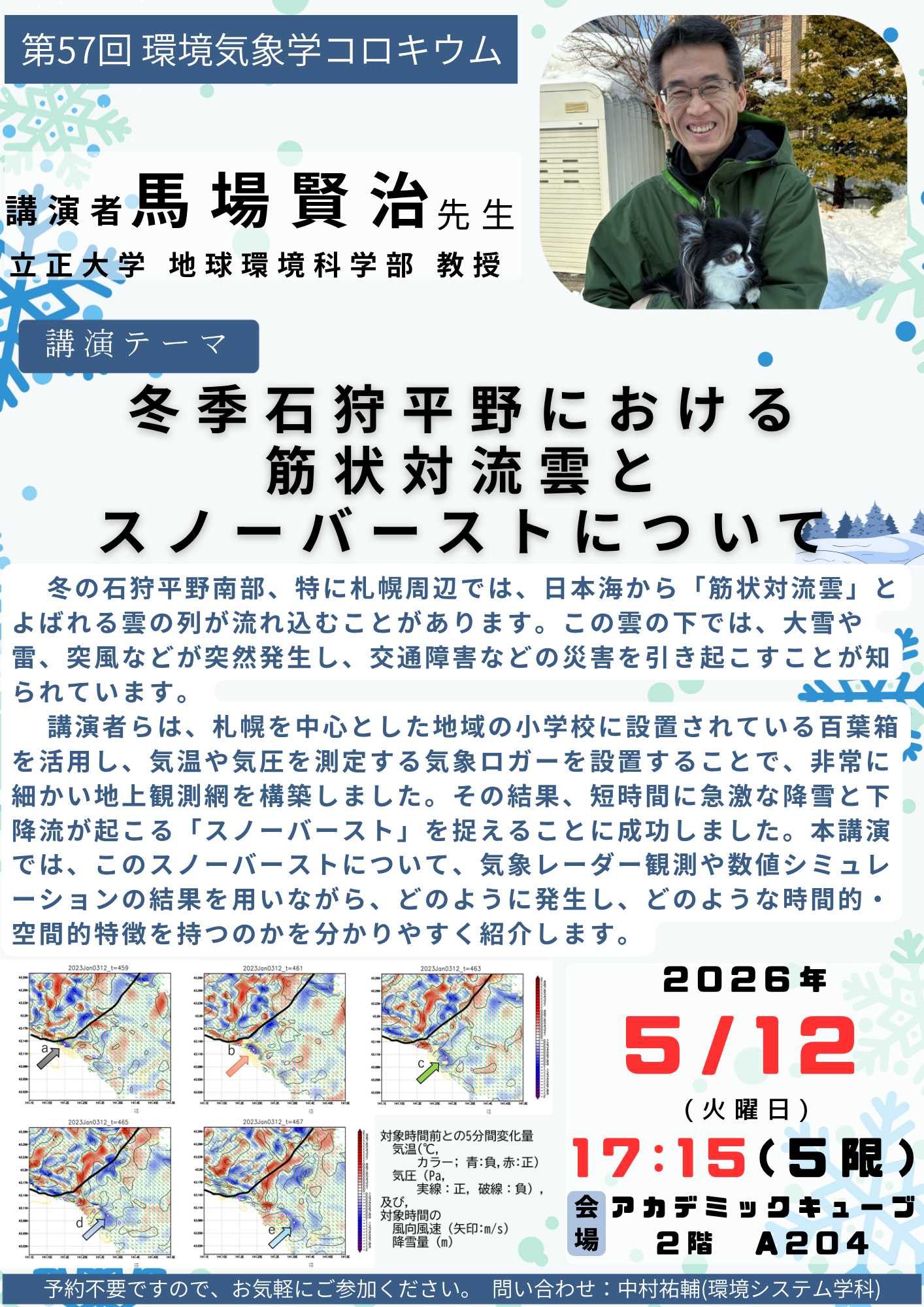 馬場賢治先生ご着任および第57回環境気象学コロキウム開催のお知らせ