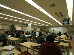 主として、地理学科の実習科目の授業に使用されています。46名分の製図板を備え、教材提示装置や各種オーディオ装置が備え付けられています。