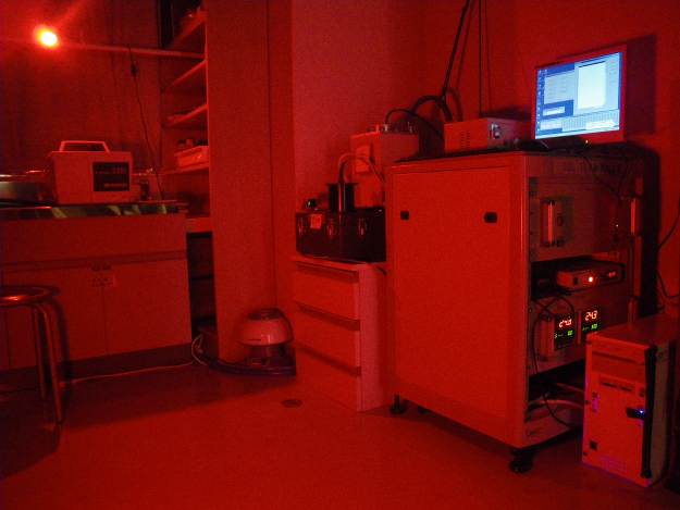 試料処理は暗室で行います。測定機にはX線管球を装着しており、放射線照射と測定を繰り返し行えます。