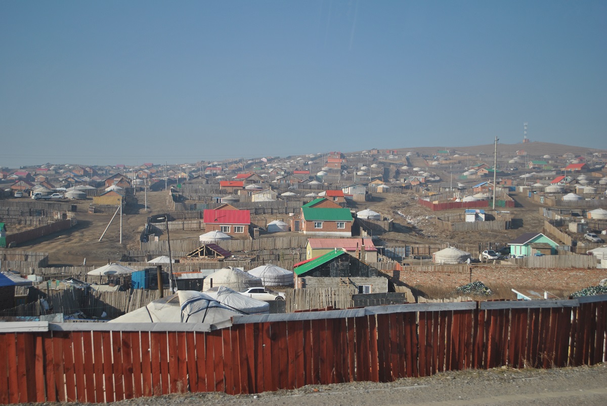 写真1 ゲル(パオ)と木造家屋が入り混じる郊外